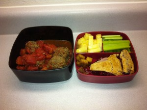 - The 2 levels that don’t have dividers aren’t very useful to me. They’re too big for what I consider a normal size dish. As you can see in the photo, the meatball and tomato dish I made only fills about half of it. (not to mention that the tomato juice would’ve leaked out if I’d taken this in my backpack to work with me)