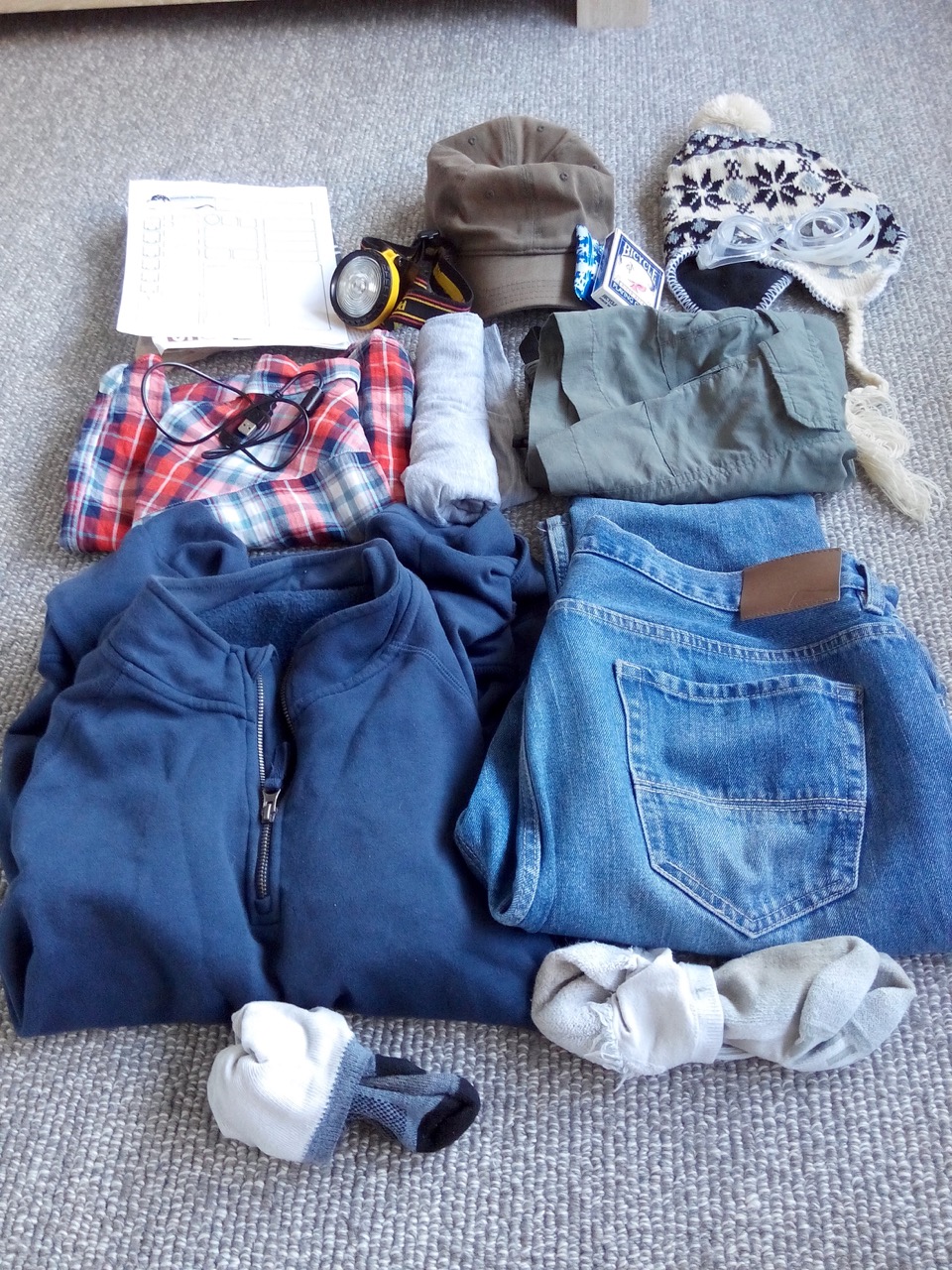 But there are other non-clothes items that I’m sure are just going to get ejected from my kit along the way. So I decided to make a little journal of it. I’m not counting food or toiletries or stuff like that. Just bigger stuff.