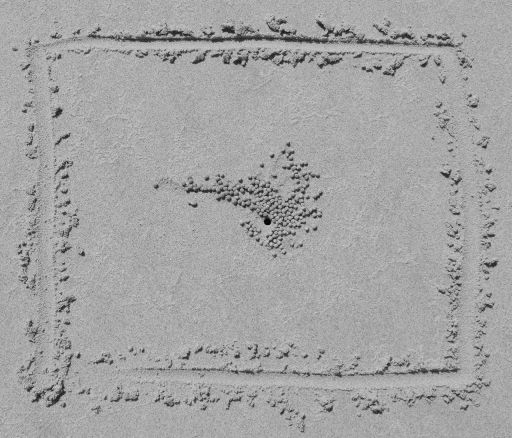 Our host at the B&B had told us about the areas on the sand where tiny crabs come up and poop out balls of sand in weird and — to him, at least — artistic patterns. The idea is that these look a little like some of the abstract Aborigine art. He’s got an idea for a photo series of these, with “frames” marked in the sand. Once we got to the beach we soon found what he was talking about.