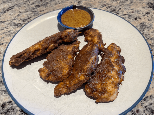 While the chicken cooks, mix the mustard and honey to make the dipping sauce. Warm it a little before serving, just a few seconds in the microwave.