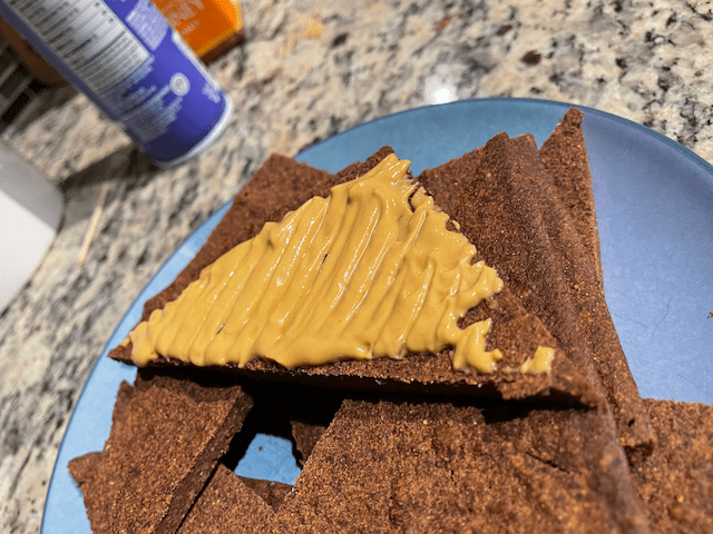 Optionally, you can spread on a little peanut butter or a mix of peanut butter powder with almond milk (less fat option).